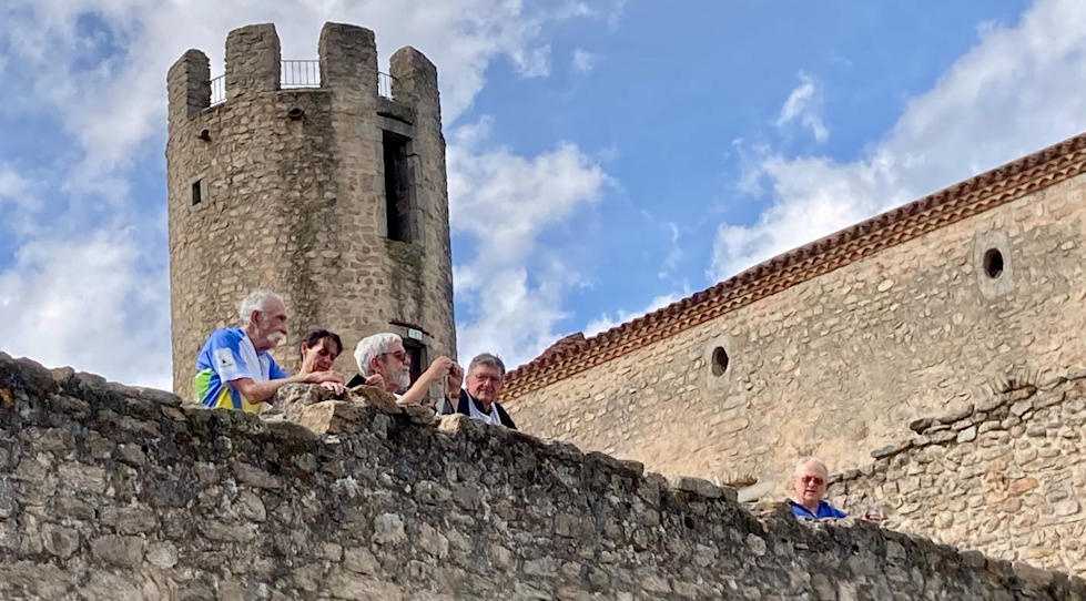 Lundi 2 juin 2025 .J1 50km 953m+ Je participe à un séjour organisé par l'association NELHI ou NOUVEL ENVOL POUR LE HANDICAP INVISIBLE Humanitaire - Caritative Le but est de faire connaître le handicap invisible par la mise en lien des personnes qui y sont confrontées, par la création de réseaux entre les différents acteurs concernés et par des actions de sensibilisation diverses. J'emmène la présidente Nelly Barbier sur mon tandem fraîchement réparé ( un bout de pneu pour fixer le guidon arrière \uD83D\uDE05) Nous avons rendez vous au nord de la ville du Puy-en-Velay à Aiguilhe où se trouve le fabuleux Rocher (Piton de lave provenant d'une cheminée de volcan.(neck)) sur lequel se dresse une surprenante et magnifique chapelle, dédiée à saint Michel depuis le 10ème siècle. Nous commençons par la visite de ce monument, préroman et roman, majeur en Auvergne. L’évêque du Puy, Godescalc, et le doyen du chapitre de la Cathédrale du Puy, Truannus, sont à l’origine de la construction de la Chapelle consacrée à Saint-Michel en l’an 961. Godescalc est également le premier pèlerin français vers Saint–Jacques de Compostelle vers l’an 950, ouvrant ainsi la “Via Podiensis” des Chemins de Saint Jacques. L’oratoire primitif de cette imposante construction se limite au chœur actuel. Il a été englobé dans un monument plus vaste, au XIIème siècle, qui épouse les contours du sommet du Rocher. Cet agrandissement, sans fondations, est constitué d’une nef, d’un déambulatoire et d’une tribune ainsi que d’une remarquable façade polychrome et trilobée. Au XIXe siècle, Prosper Mérimée ordonne le nettoyage des badigeons qui couvrent les fresques de la Chapelle. Ce travail, confié au peintre restaurateur Anatole Dauvergne est accompagné de relevés. Dernièrement ces dessins ont permis de restaurer et révéler des fresques qui étaient devenues illisibles. Après le picnic à Aiguilhe, et la réparation du tandem effectuée, nous pouvons débuter notre périple.Nous sommes 3 participantes: Nelly, Corinne et moi accompagnées sur cet première étape par Jacques (conduisant le véhicule), Moustache , Dédé et Hubert du cyclo club du Pilat , Alain Solheillac et son pilote Eric , Patrick en vélo musculaire.. Notre trajet est le suivant : Polignac , Blanzac , St Paulien ( et sa magnifique église St Georges de style roman auvergnat ) ,Céaux d'Allègre , Allègre et sa "Potence" (nom donné aux étonnants vestiges d’un des châteaux bâtis au sommet du volcan de Baury). Sambadel gare , la Chaize Dieu et sa superbe abbatiale médiévale St Robert . Arrivée tardive à la Chapelle Geneste où nous avons notre hébergement : les gîtes du bois de Chelle. 50km 953m+ |