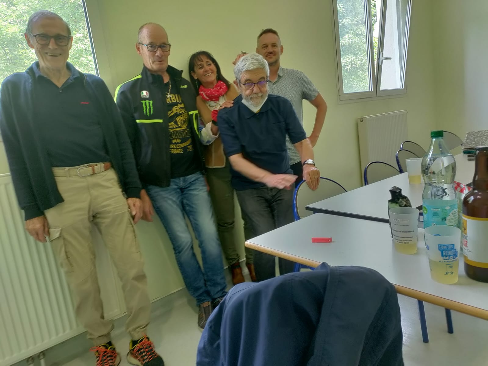 Mardi 3 juin 2025.J2.106km 1195m + Ce matin nous sommes 3 à pédaler : Patrick , Corinne et moi en tandem .Nelly conduit le véhicule .Notre duo avec Corinne est parfait .Nous démarrons du gîte sous l'oeil bienveillant des huskis de la propriétaire. Notre périple est le suivant : St Sauveur la Sagne, Novacelles, St Bonnet le Chastel, Chambon sur Dolore, Fournols, St Eloy la glacière, St Dier d'Auvergne . Là nous retrouvons Nelly pour le picnic . Nous sommes rejoint par Jean Luc de St André le Coq.Nous repartons ensemble pour aller à Trézioux, Sermentizon, Château de Ravel (Ancienne forteresse royale du XIIe siècle, réaménagé sans destruction au XVIIIe siècle, au jardin dessiné par André Le Nôtre, il a été l'hôte du tournage du film Les Choristes, à l'été 2003 ) , Lezoux , Lempty, Joze, Maringues. Arrivée à St André le Coq après 106km 1195m + Acceuil par le maire du village.Goûter chez Nicole et Jean Luc . Nelly va récupérer notre chauffeur Beradjaa à la gare d'Aigueperse. Notre hébergement chez Magalie est situé à Pagnant ,commune de St André le Coq..En soirée ,temps orageux avec pluie +++ |